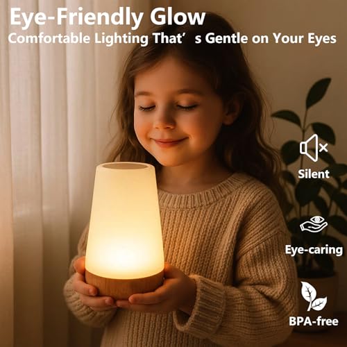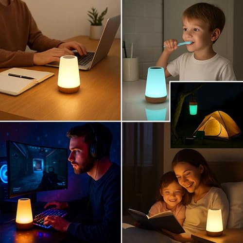 - Portable, Cordless, and Stylishly Compact: At only 5.9 inches (15 cm) tall with a sleek wood grain finish, this small table lamp is perfect for bedside use or travel. The lightweight, cordless design makes it ideal as a portable night light for outdoor camping, children's sleepovers, or late-night feeding without disturbing others.