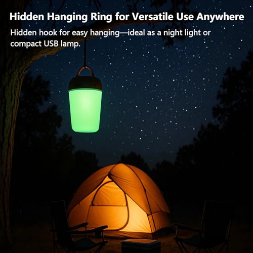 - Hidden Hanging Ring for Versatile Use Anywhere: Designed for flexibility, the base includes a hidden hanging ring that lets you suspend the lamp from hooks, tents, or backpack loops. Whether used as a night light baby accessory, girls night light, or a USB table lamp in tight spaces, it adapts to every situation with ease.