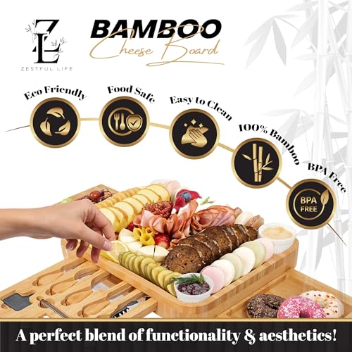 - Perfect Gift Set: Zestful Life Cheese board and knife set is a stylish and practical gift for weddings, housewarmings, birthdays or food lovers who appreciate an elegant serving experience