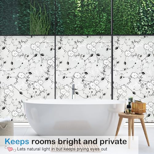 - 🌟【Modern Privacy Window Film】With attractive black&white flowers printed on classic opaque window film, this window privacy film self adhesive not only enhance the look of your windows but also create an elegant living environment. A perfect substitute for expensive curtains or window blinds, providing you with a cost-effective solution to enhance your home's privacy and beauty.