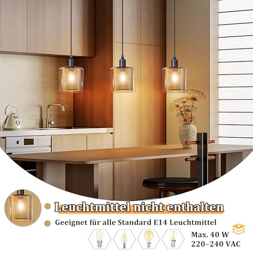 - Material: The pendant lamp consists of sturdy iron for the inner part and clear glass for the outer shade. It is equipped with an E14 socket, which is suitable for light bulbs up to a maximum of 40 W. The light bulb is not included in the scope of delivery