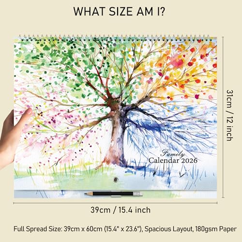 - More Than Just a 2026 Calendar – Includes thoughtful extras such as shaded weekends for better visibility, a clip-on pencil with eraser, a space for useful contacts, and a back storage pocket – perfect for holding notes, appointment cards or receipts. Everything you need in one place.