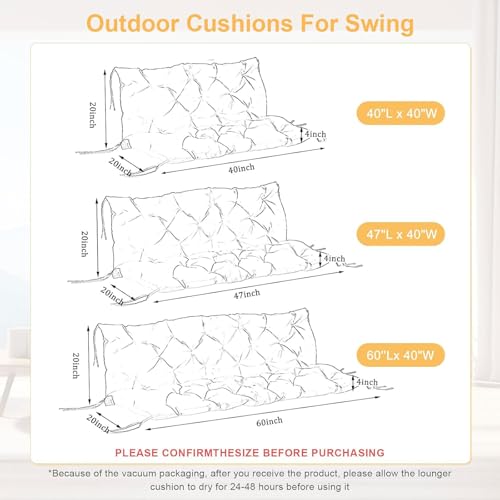 - 4 Inch Super Thick Filling: Upgrade your replacement cushions for outdoor furniture with this ultra comfortable swing cushion. Made from premium polyester fiber and PP cotton, the 4-inch thick filling provides outstanding softness, elasticity, and long-lasting support. Bring superior comfort to your garden swing, outdoor bench, or indoor seating area