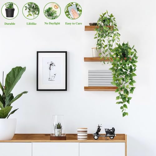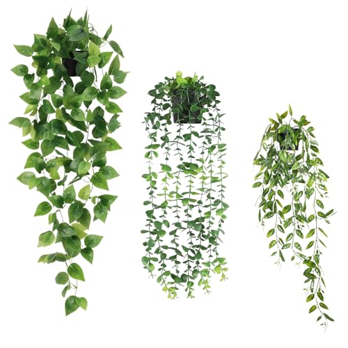 - Lifelike & Easy to care: Three different shapes of artificial green hanging plants in pots look lifelike and add a natural touch to your home and office, perfect for giving your space a fresh look. The decorative artificial plants require no daily care, will not wilt or fade and you don't have to worry about watering or sunlight, providing an easy option for busy people.